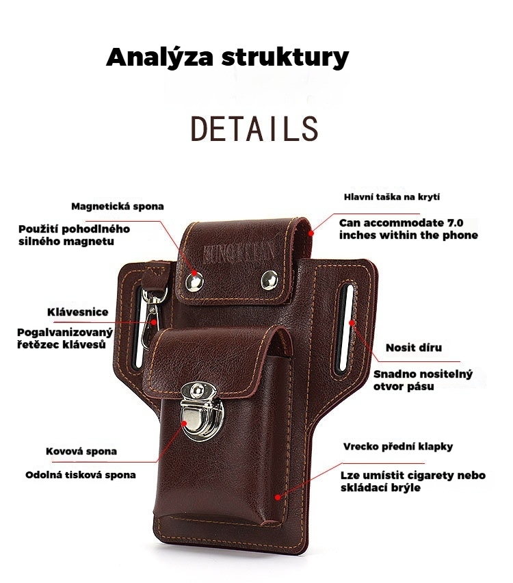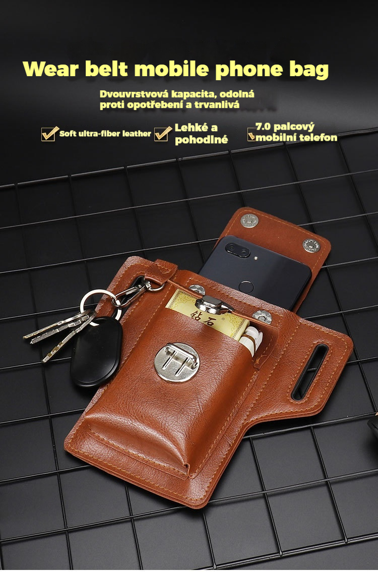 Multifunkční kožená ledvinka pro muže